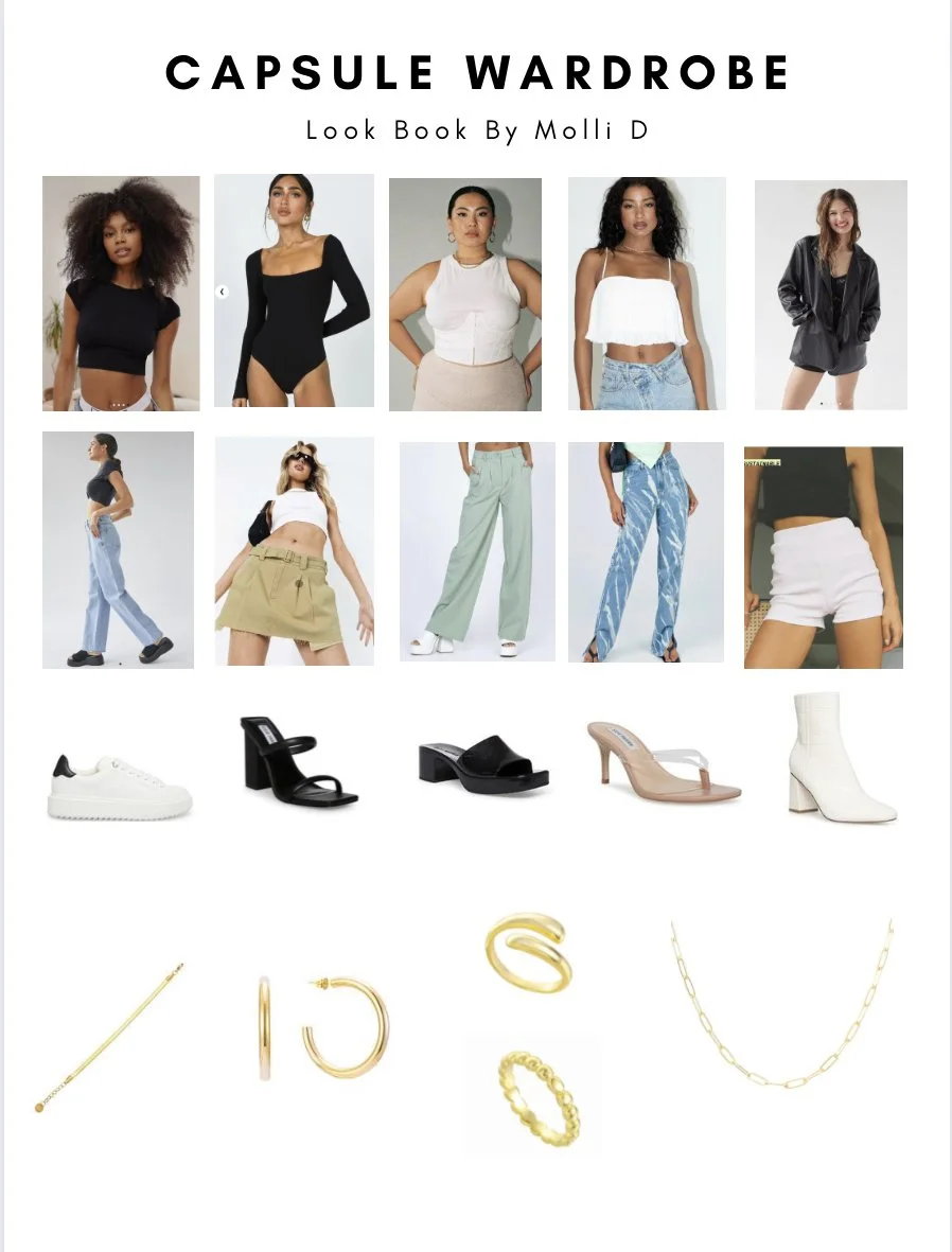 My personal online look book includes 5 head to toe outfits that can be easily mixed and matched. These outfits will all be based off of the goals you have for your future wardrobe, as well as fit your current personal style. This online look book is customized perfectly for you and includes multiple inspiration photos and links to every item so it can be easily found online.